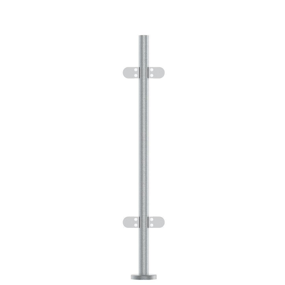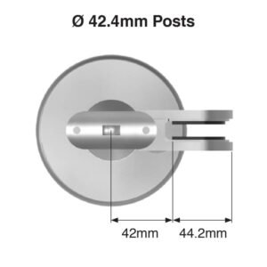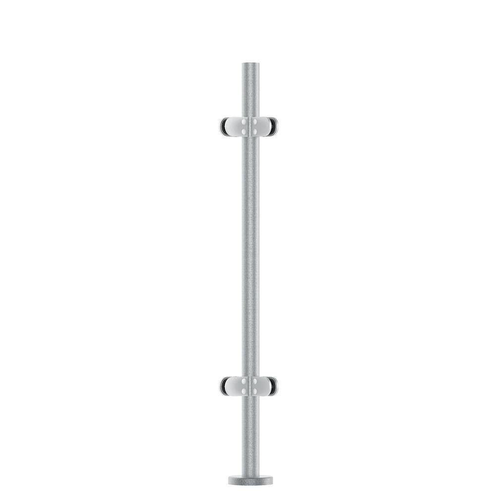 Bolt-down satin finish stainless steel pre-assembled end post. Complete with 2 glass clamps (end post) or 4 glass clamps (mid/corner post) and base cover plate.