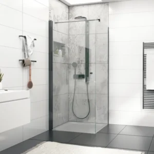 With the aluminium profiles from the Aqua series, every glass shower becomes especially eye-catching. The set consists of a glass profile, a wall profile, an intermediate profile with brush moulding and accessories. The elegant profiles can be cut to any length. Integrated side seals minimise water leakage. The lifting and lowering mechanism with 5 mm lifting height allows the door to close gently and silently by itself. A hold-open of 90° is possible on both sides.