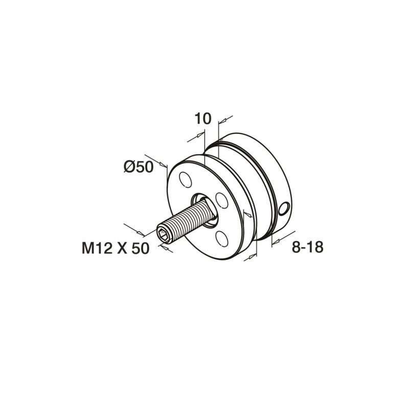 Ø50mm brushed stainless steel stand off point fixing with 10mm thick back plate that can be screwed using countersunk head screws to stair stringers etc comes with nylon spacers