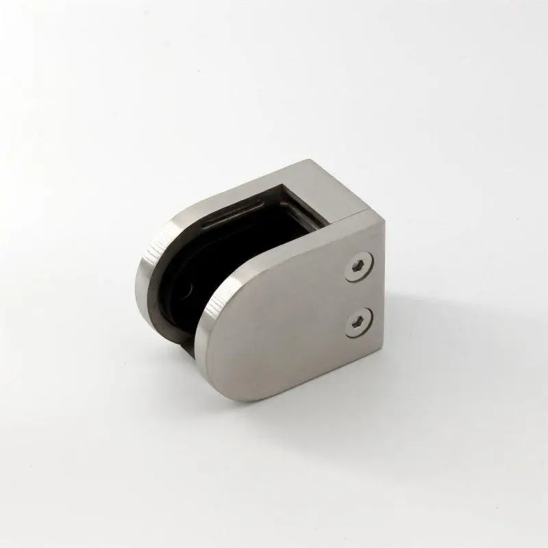 Brushed stainless steel balustrade clamp to suit various glass thickness, available in 304 & 316 Marine Grade stainless steel.