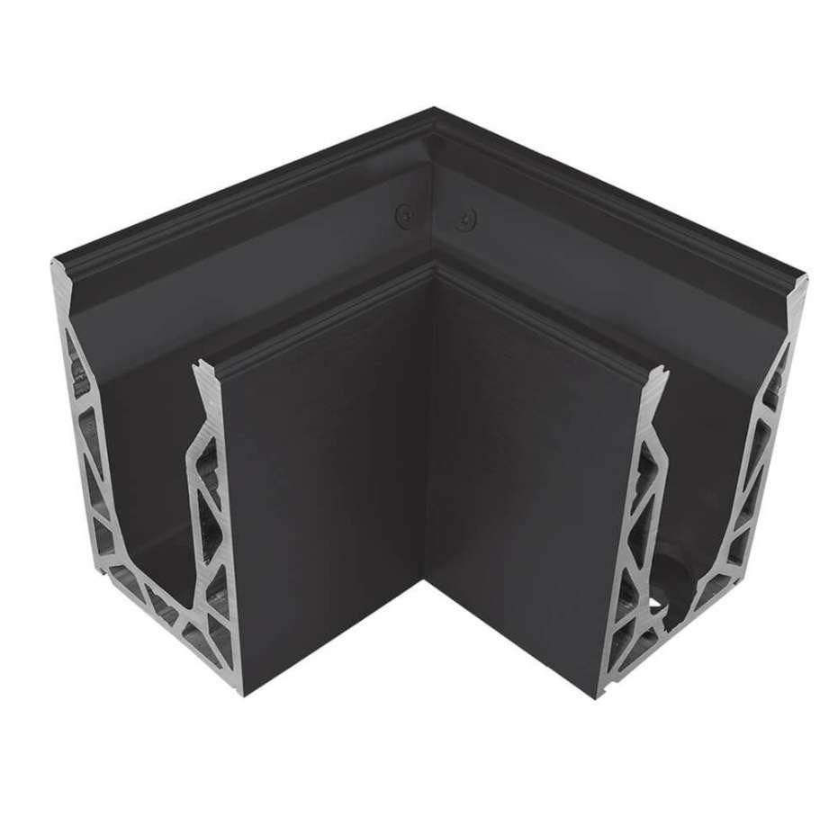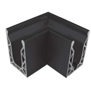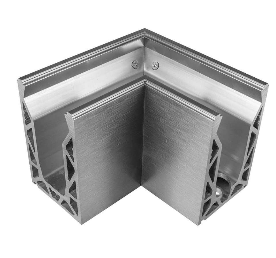 Pre formed 90° corner for the Posiglaze base channel system in either silver anodised or black finish