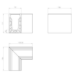Corner distance on outer edge = 135mm