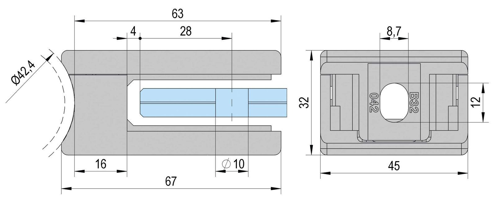 Chrome Plated finish balustrade clamp to suit various glass thickness